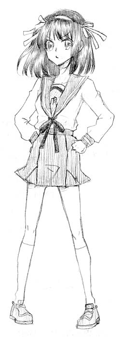 1期のOPの影絵のイメージでどうしても内股にしてしまうんですが、ハルヒは内股よりもバーンとしてる方がっぽい気がします。